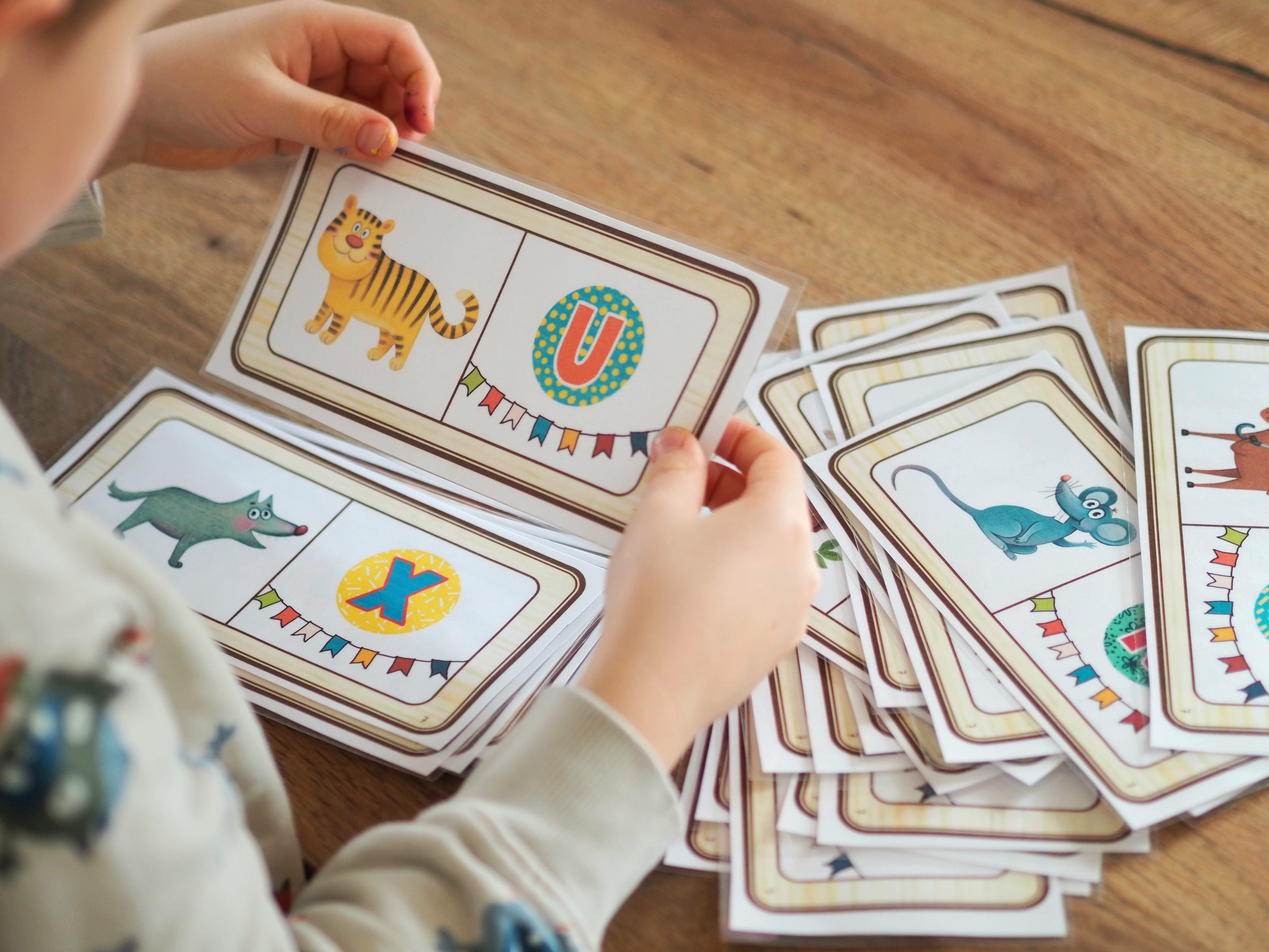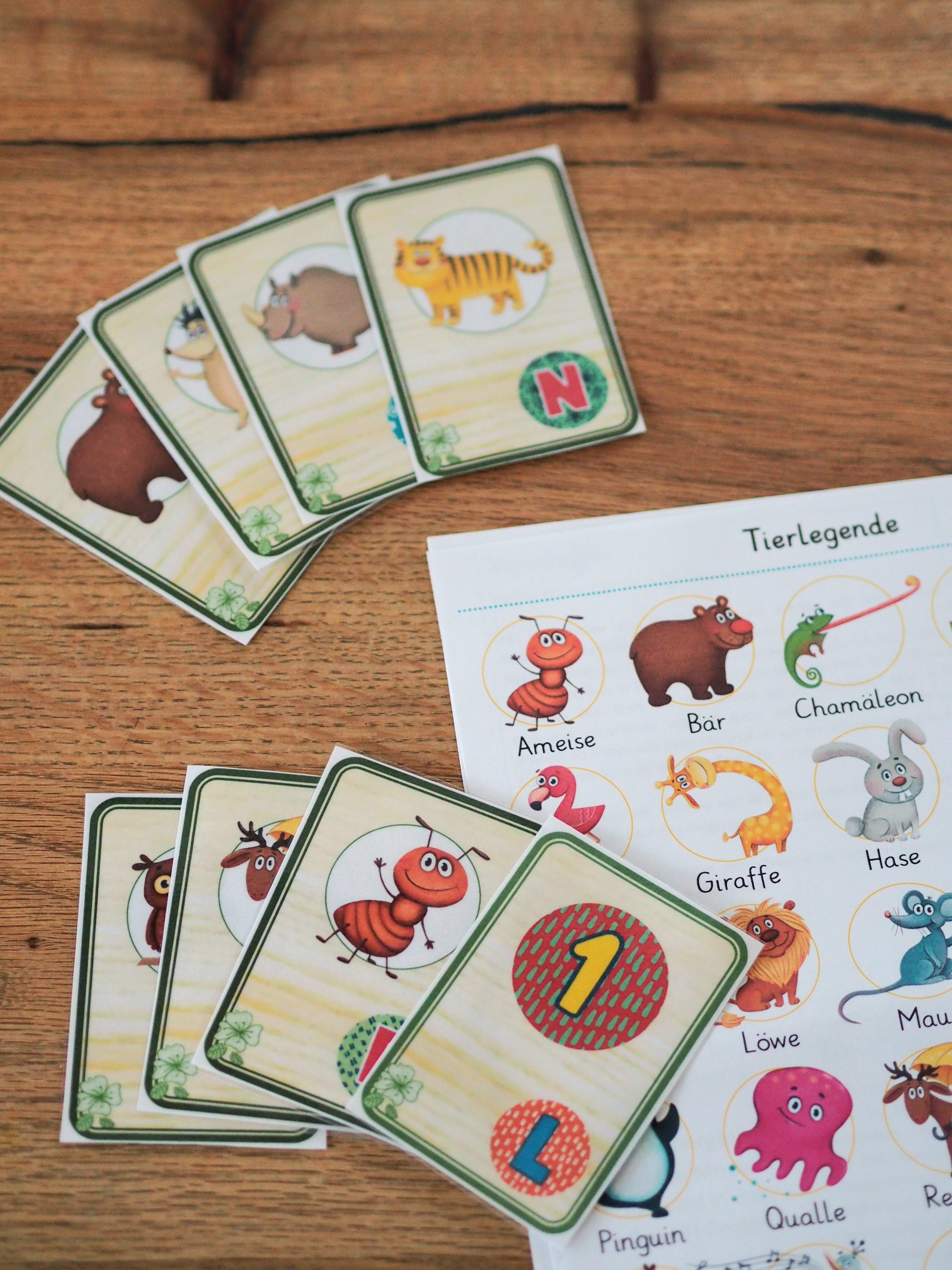 in 3 Differenzierungsstufen wird das Hören von Anlauten trainiert und spielerisch das ABC der Tierwelt zugeordnet. z.B. A= Ameise. Variiert gerne das Spiel indem z.B. die Karten auf dem Boden ausgebreitet werden und mit einem Wurfsack auf eine Karte gezielt wird ( z.B. Seepferdchen und A) Als nächstes wird versucht die Karte mit dem S und der Ameise zu treffen.