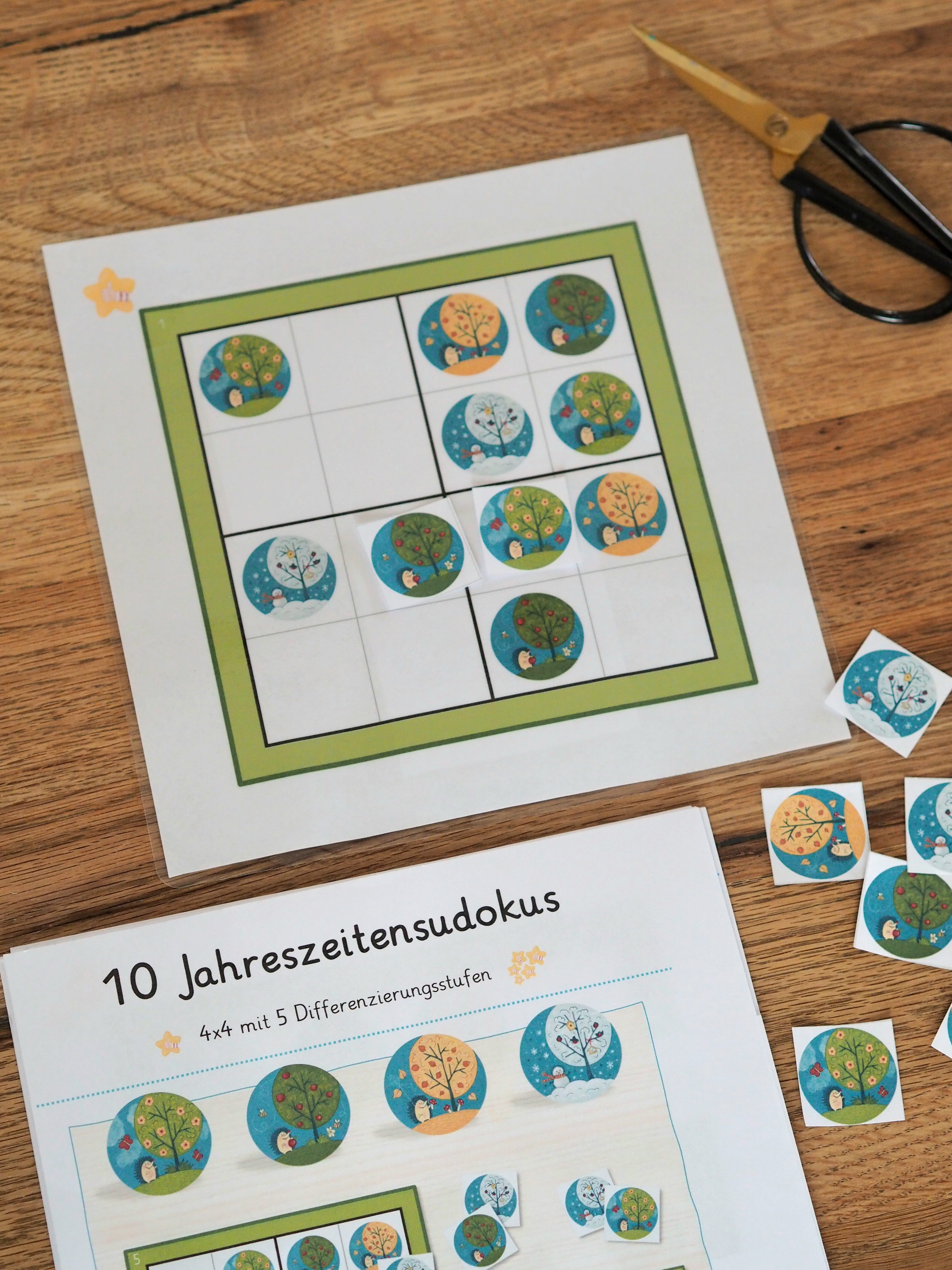 10 Sudokuspiele mit 4 Differenzierungsstufen, von leicht bis schwer. Auch ältere Kinder (5.Klasse) haben sich beim längeren knobeln ertappt. 17 DIN A4 Seiten