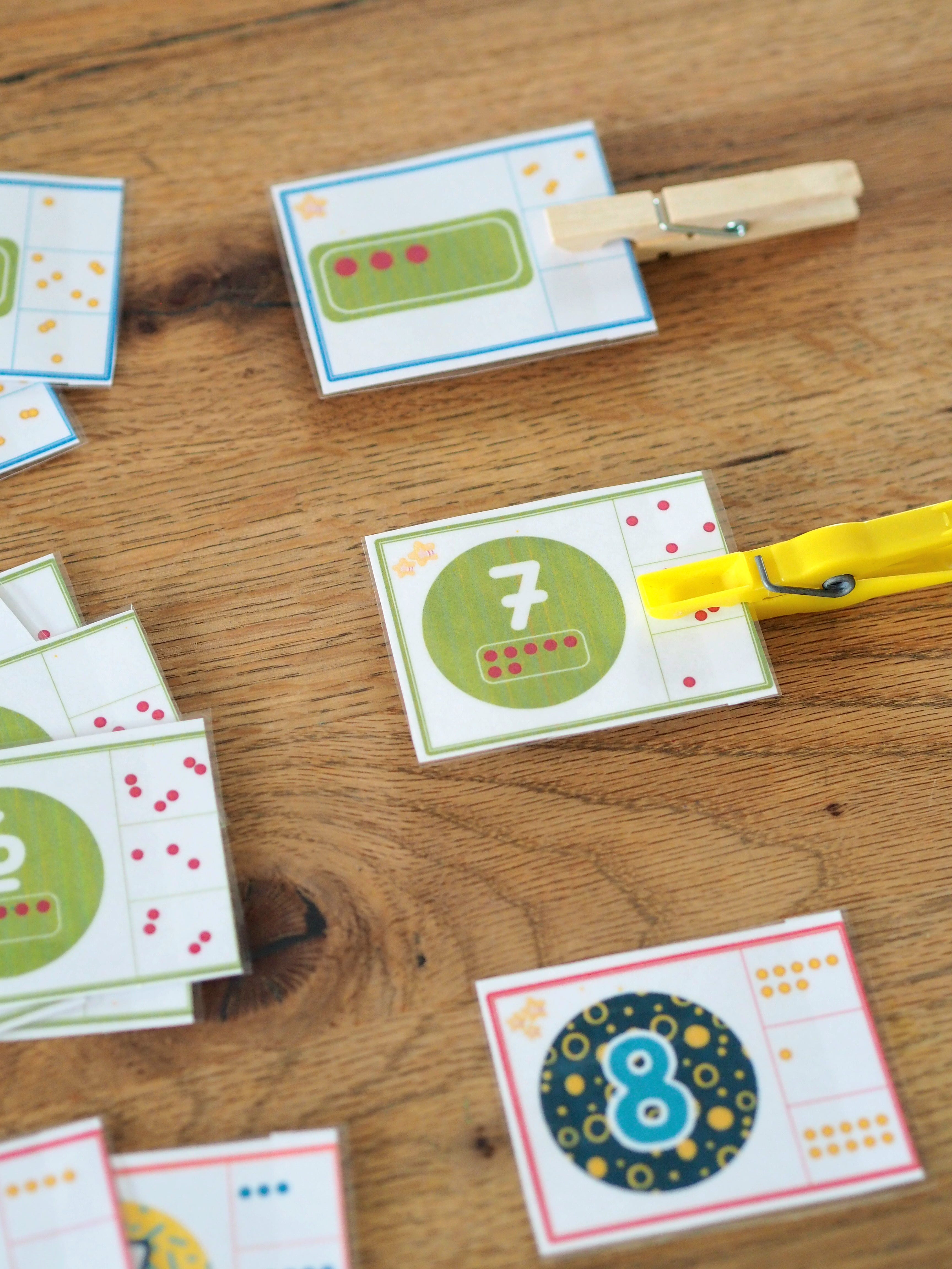 12 Kartensets mit 4 Differenzierungsstufen. Ziel ist es eine gute Verknüpfung der Ziffer mit der Menge zu schaffen. Die Kinder können sich selbstständig kontrollieren. 17 DIN A4 Seiten