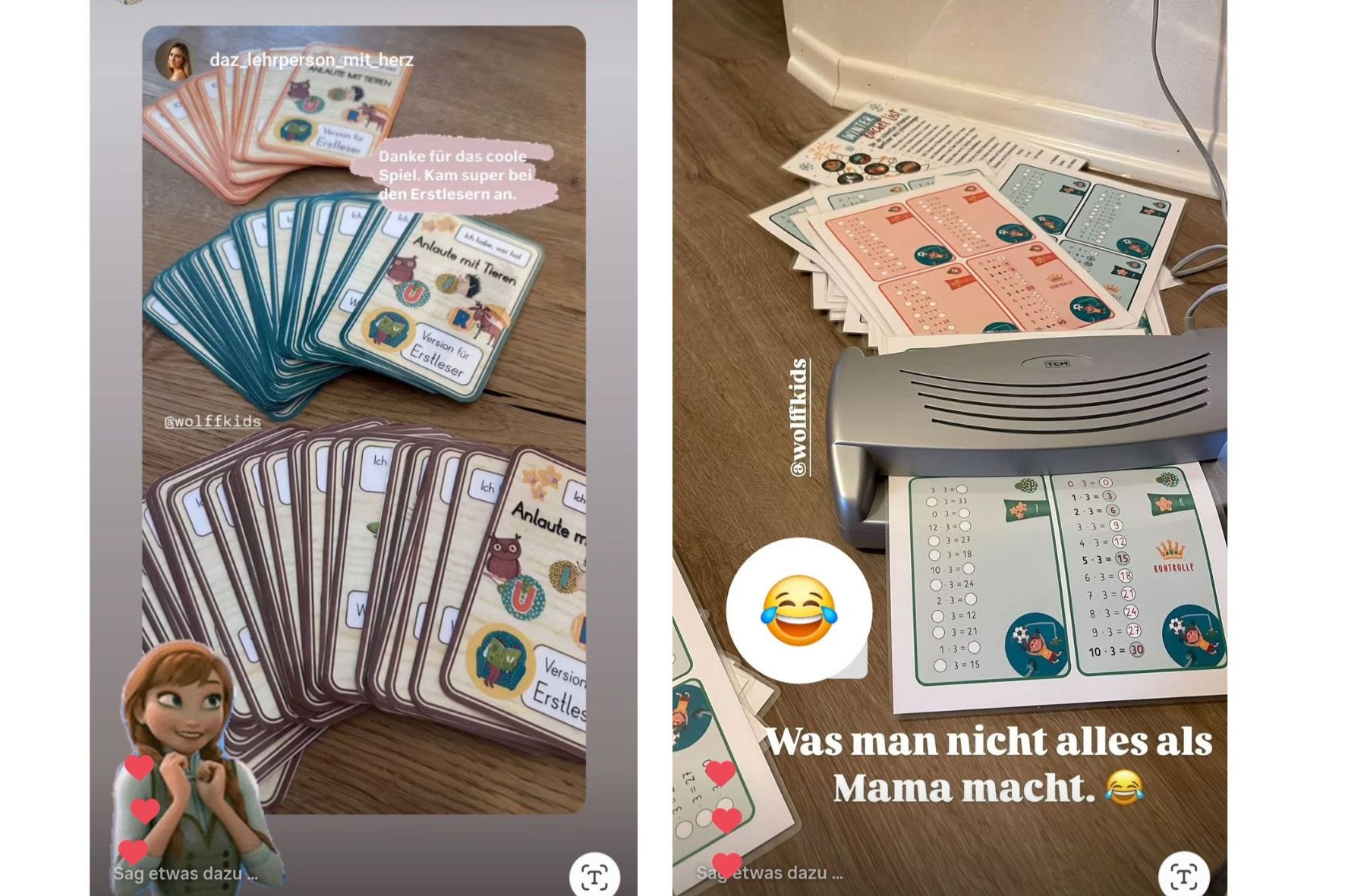 Ich arbeite eng mit Melanie von Woffkids zusammen. Alle hier gezeigten Materialien zeigen ihre liebevollen Illustrationen und sind auf ihre Magnetsets abgestimmt.